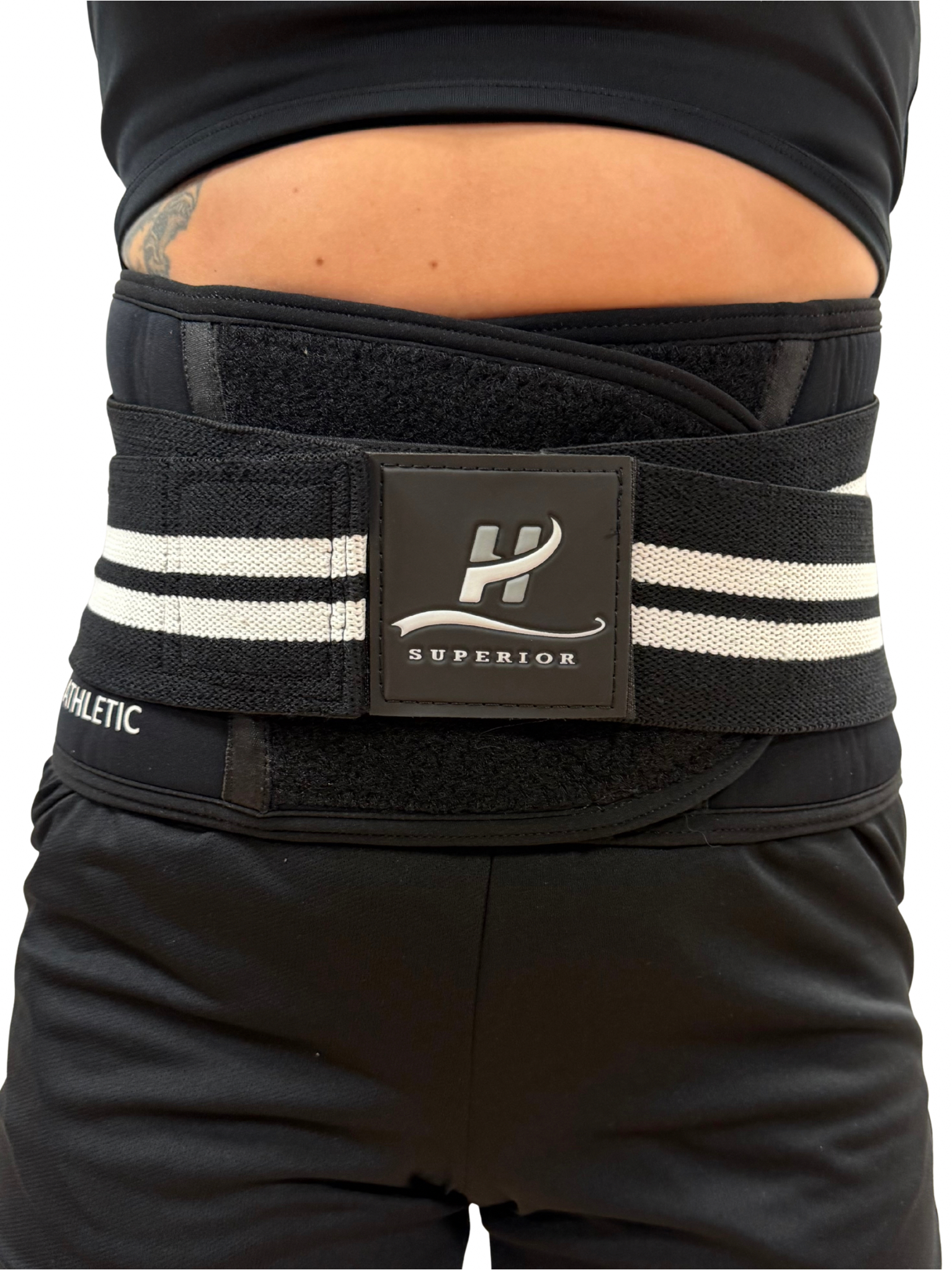 • Can be worn alone or under a powerlifting / strongman belt for extra support