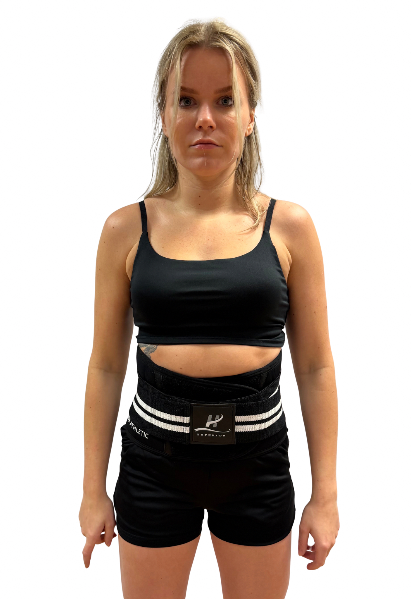 At the front the belt has a low-profile Velcro closure with extra elastic straps. These straps let you dial in the tension – you can wear it looser for warm-ups and accessory work or crank it tighter for heavy sets and events. The back panel is higher and reinforced, giving extra support over the lumbar area without digging into your ribs or hips.